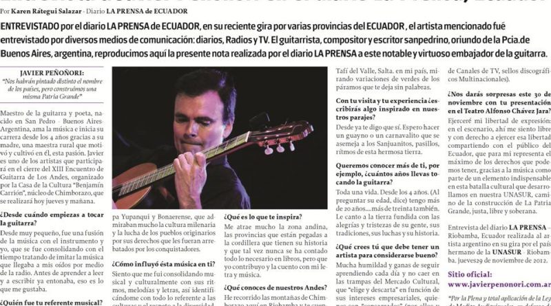 Leer másEntrevista a Javier Peñoñori en Ecuador La PrensaDiario de ChimborazoEntrevista a Javier Peñoñori en Ecuador