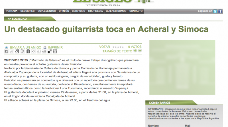 Leer másUn destacado guitarrista toca en Acheral y Simoca “Murmullo de Silencio”EL SIGLO