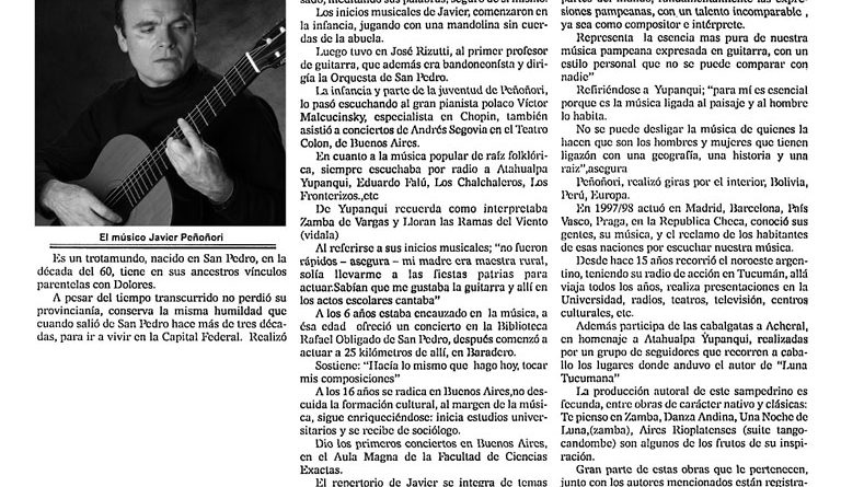 Leer másGuitarrista, compositor y escritor Argentino Javier Peñoñori presenta su octavo discoDiario TIEMPO ARGENTINO