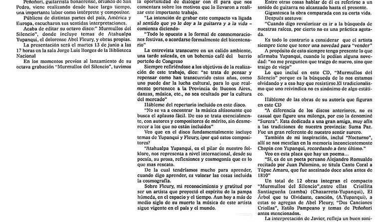 Leer más“Murmullo del Silencio” Javier Peñoñori. Utopía ProduccionesPAGINA 12