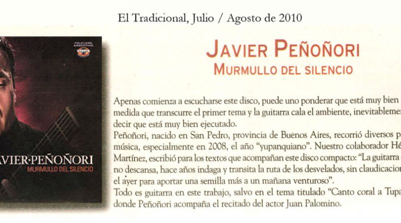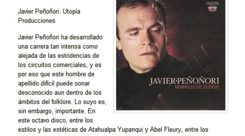 Leer másJavier Peñoñori presenta su último trabajo titulado Murmullo del Silencio Utopía ProduccionesEL TRIBUNO