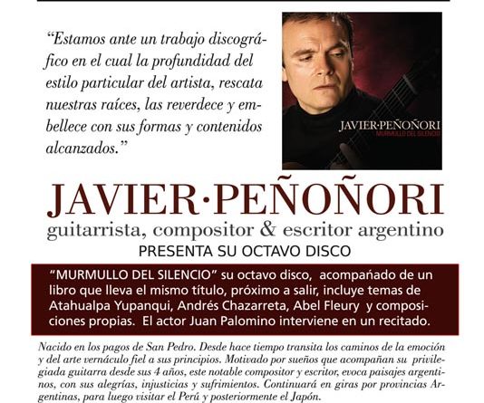 Guitarrista, compositor y escritor Argentino Javier Peñoñori presenta su octavo discoDiario Tiempo ARGENTINO